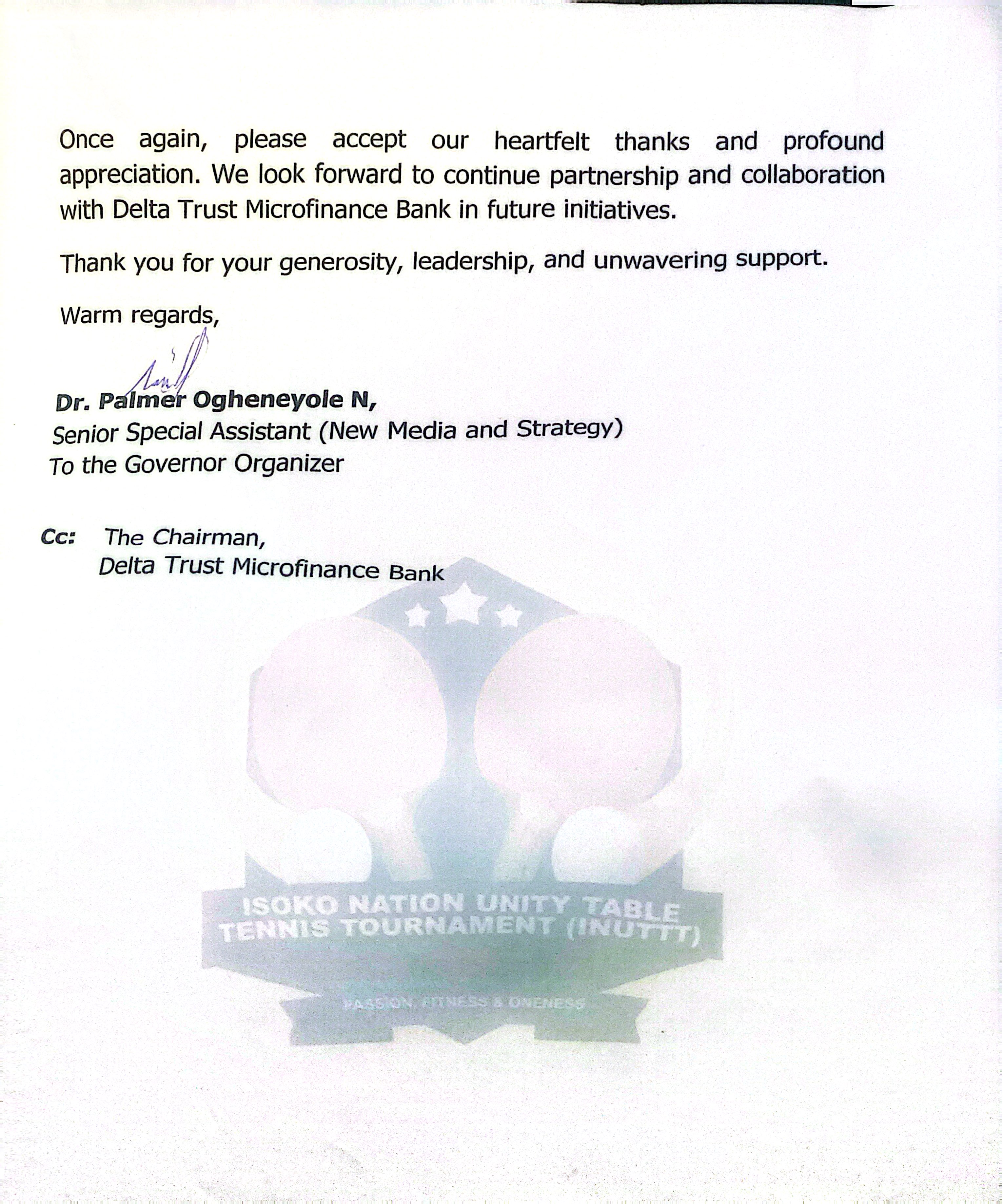 Delta Trust Microfinance Bank Strengthens Community Unity Through Support for Isoko Table Tennis Tournament News Description Gallery